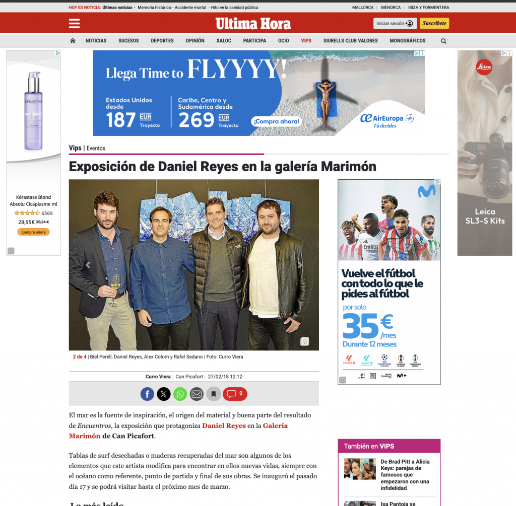The sea is the source of inspiration, the origin of the materials, and a key part of the outcome in Encuentros, the exhibition by Daniel Reyes at Galería Marimón in Can Picafort.