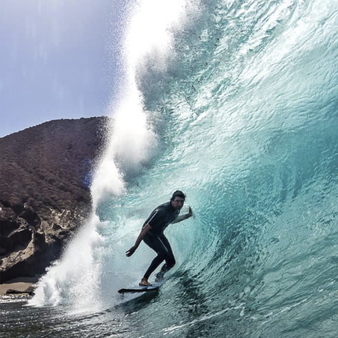“Desde el azul profundo emerge la memoria líquida del océano, un cuerpo inmenso que respira en corrientes invisibles. La superficie, hecha de destellos, guarda la huella efímera de un amante de espuma: la tabla que hiende el mar y dibuja sobre él una cicatriz perfecta e indolora. El blanco, como un rayo de luna sobre la superficie es el rastro efímero de la fuerza y la calma. En cada trazo, el oleaje se convierte en piel y latido, en instante suspendido. Una estela blanca que surca un océano de momentos”.